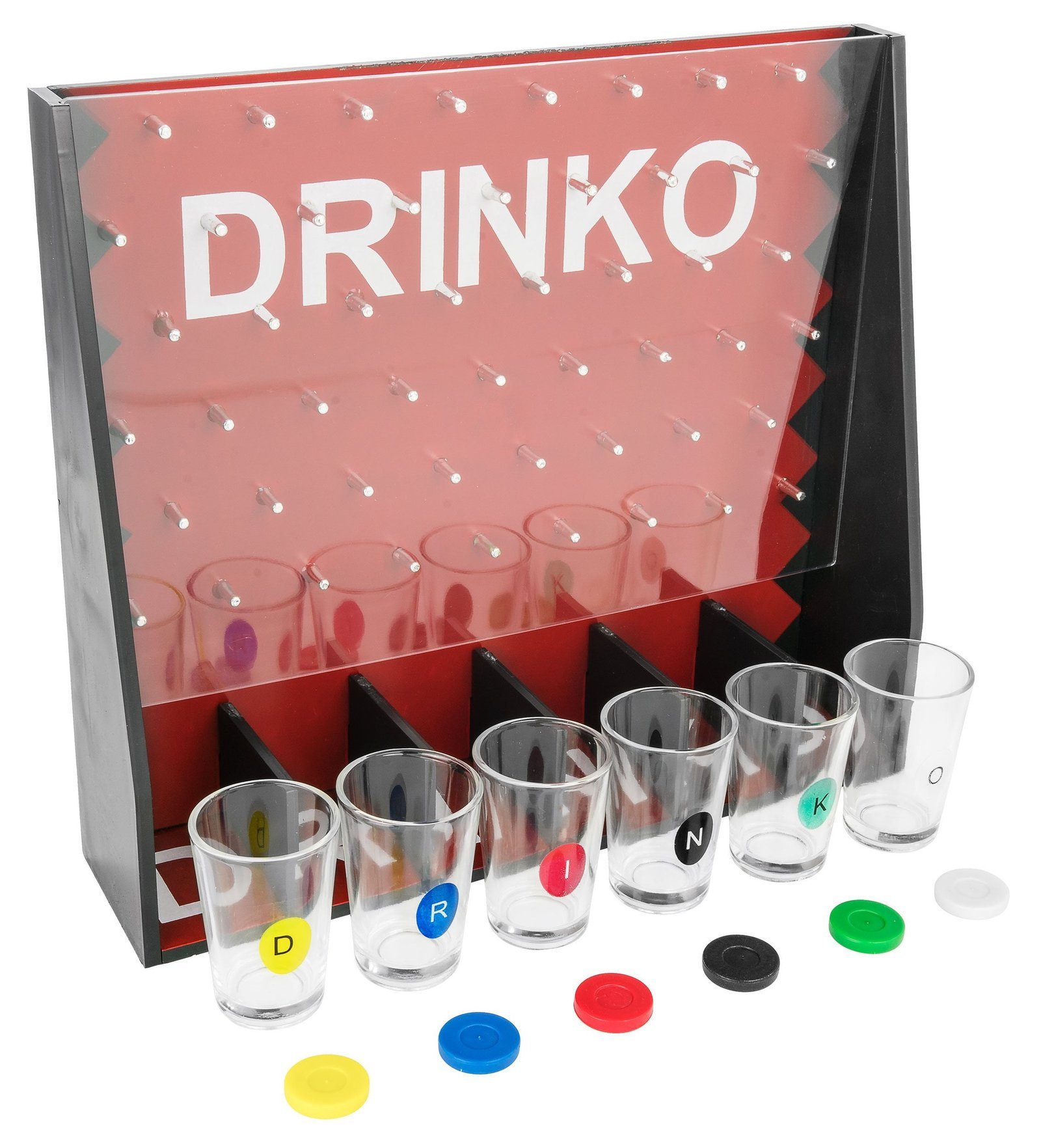 DRINKO drinking game is great fun and includes shot glasses, DRINKO board, instructions and playing chips.
